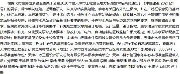 天津市城市排水泵站建设标准收藏