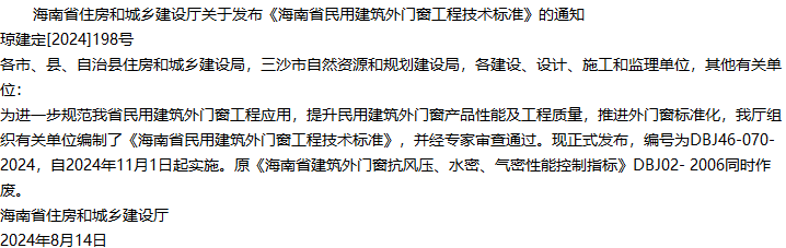 海南省民用建筑外门窗工程技术标准收藏