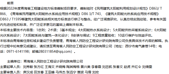 青海省太阳能利用与建筑一体化技术标准收藏
