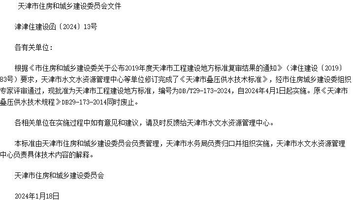 天津市叠压供水技术标准收藏